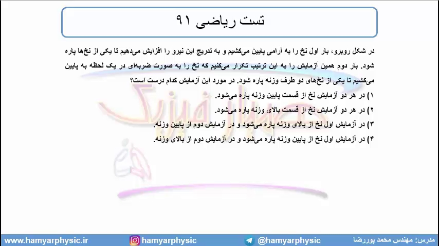 جلسه 71 فیزیک دوازدهم - قوانین حرکت نیوتون 8 و تست ریاضی 91 - مدرس محمد پوررضا