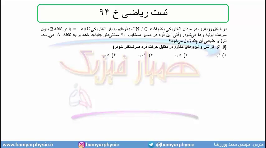 جلسه 60 فیزیک یازدهم - پتانسیل الکتریکی 8 و تست ریاضی خ 94 - مدرس محمد پوررضا