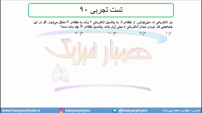 جلسه 59 فیزیک یازدهم - پتانسیل الکتریکی 7 و تست رتجربی 90 - مدرس محمد پوررضا