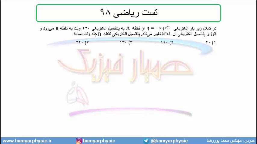 جلسه 64 فیزیک یازدهم - پتانسیل الکتریکی 12 و تست ریاضی 98 - مدرس محمد پوررضا