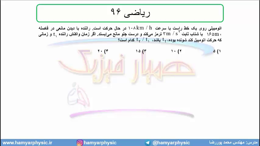 جلسه 62 فیزیک دوازدهم - حرکت با شتاب ثابت 30 تست ریاضی 96 - مدرس محمد پوررضا