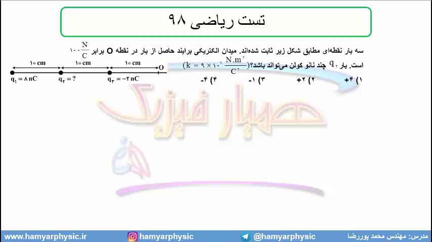 جلسه 49 فیزیک یازدهم - میدان الکتریکی 19 تست ریاضی 98 - مدرس محمد پوررضا
