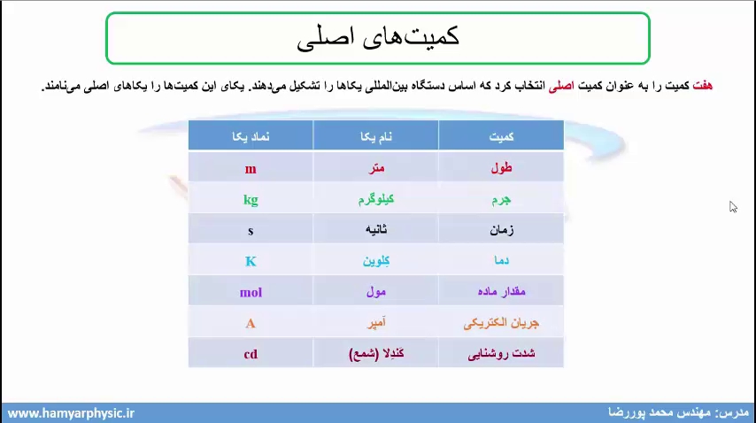 جلسه 2 فیزیک نظام قدیم - کمیتهای اصلی و فرعی - مدرس محمد پوررضا