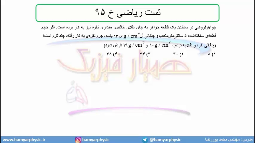 جلسه 46 فیزیک دهم-چگالی مخلوط تست ریاضی خ 95- مدرس محمد پوررضا