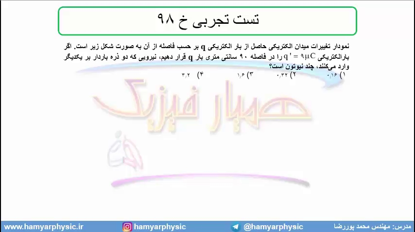 جلسه 45 فیزیک یازدهم-میدان الکتریکی 15 تست تجربی خ 98-مدرس محمد پوررضا