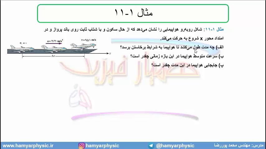 جلسه 34 فیزیک دوازدهم-حرکت با شتاب ثابت2 حل مثال 11 و تمرین 8- مدرس محمد پوررضا