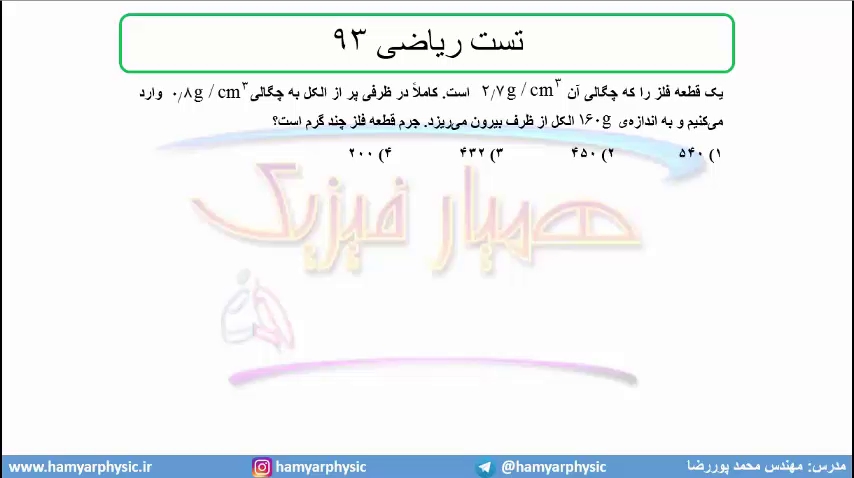 جلسه 43 فیزیک دهم-چگالی 13 تست ریاضی 93- مدرس محمد پوررضا