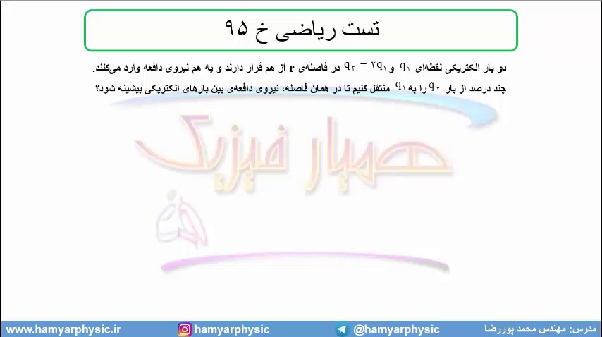 جلسه 24 فیزیک یازدهم- الکتریسته ساکن تست ریاضی خ 95- مدرس محمد پوررضا