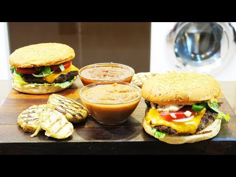 همبرگر خانگی با سیب زمینی خوشمزه و سالم یک برگر مدیترانه