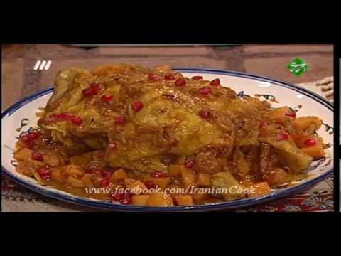 آشپزی ایرانی -مرغ شکم پر با به و انار