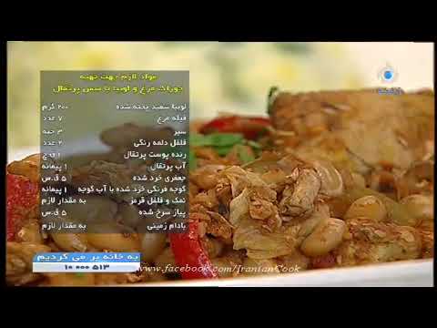 خوراك مرغ و لوبيا با سس پرتقال