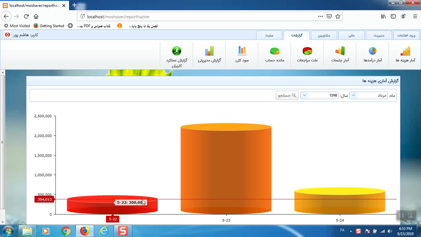 نرم افزار مدیریت مراکز مشاوره - سنم ، آمار هزینه ها