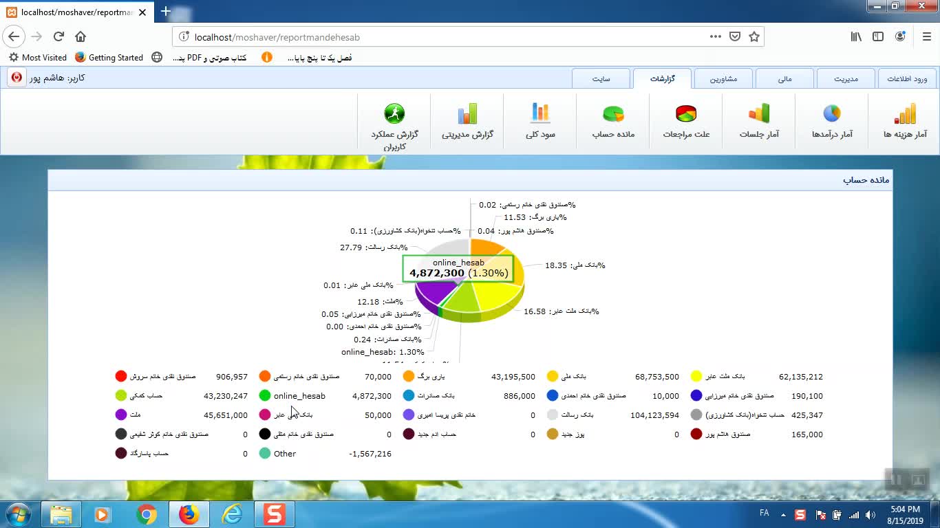 نرم افزار مدیریت مراکز مشاوره - سنم ، ماژول مانده حساب
