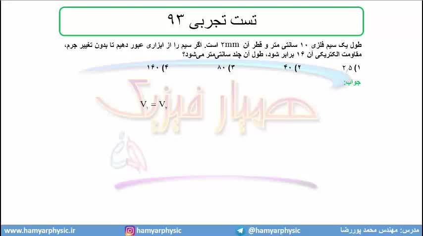 جلسه 94 فیزیک یازدهم - عوامل موثر بر مقاومت الکتریکی 7 تست تجربی 93 - مدرس محمد پوررضا