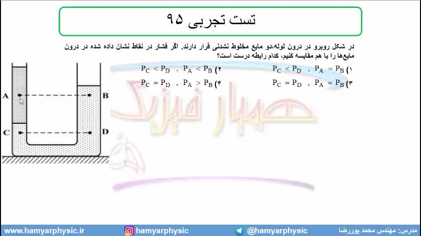 جلسه 95 فیزیک دهم - فشار در شاره ها 27 و تست تجربی 95 - مدرس محمد پوررضا