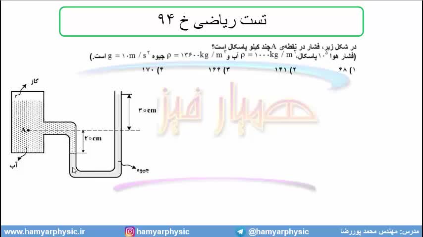 جلسه 96 فیزیک دهم - فشار در شاره ها 28 و تست ریاضی خ 94 - مدرس محمد پوررضا