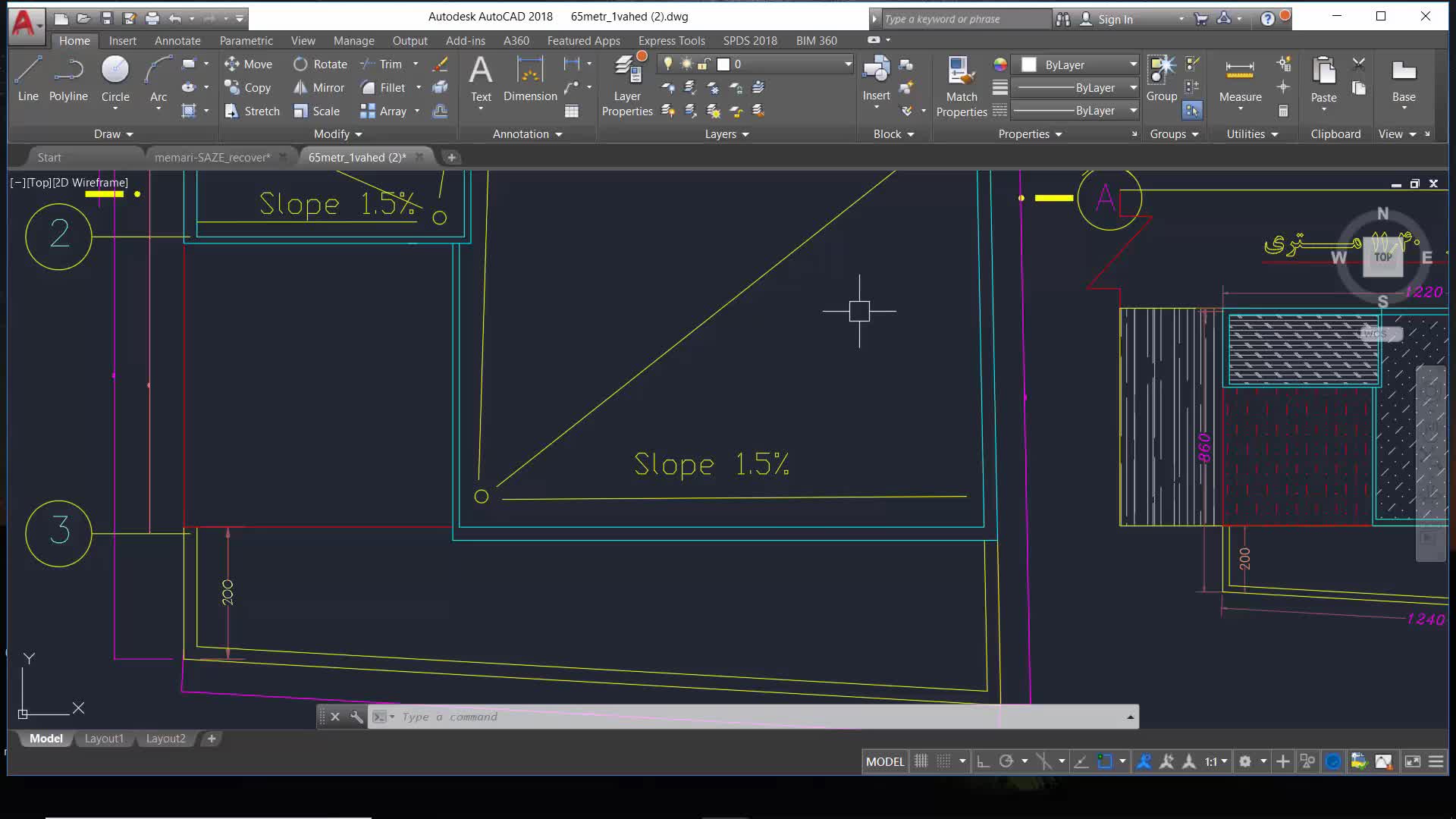 نکات متره ای پلان شیب بندی بام در اتوکد