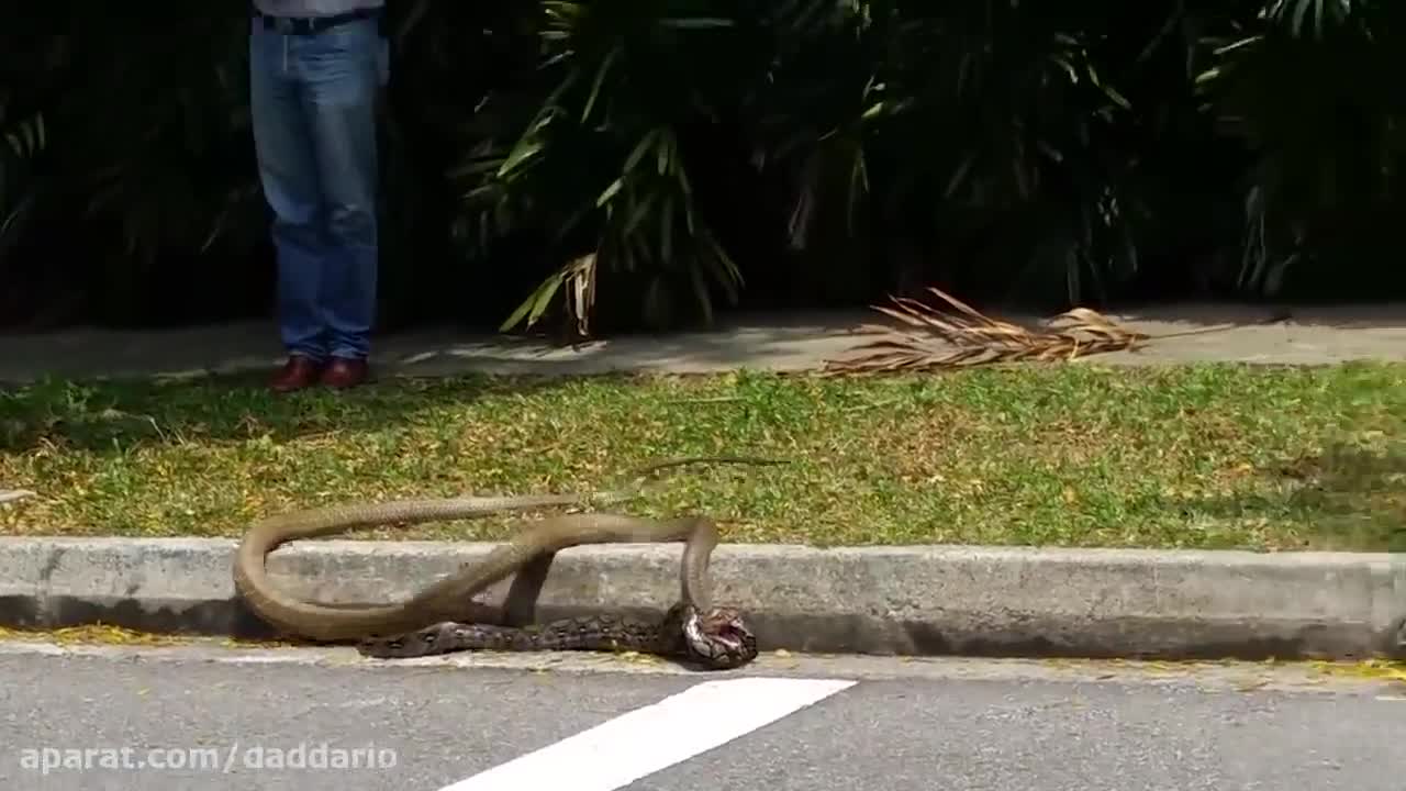 جنگدیدن ی مار پیتون و مار کبرا غول پیکر وسط خیابان