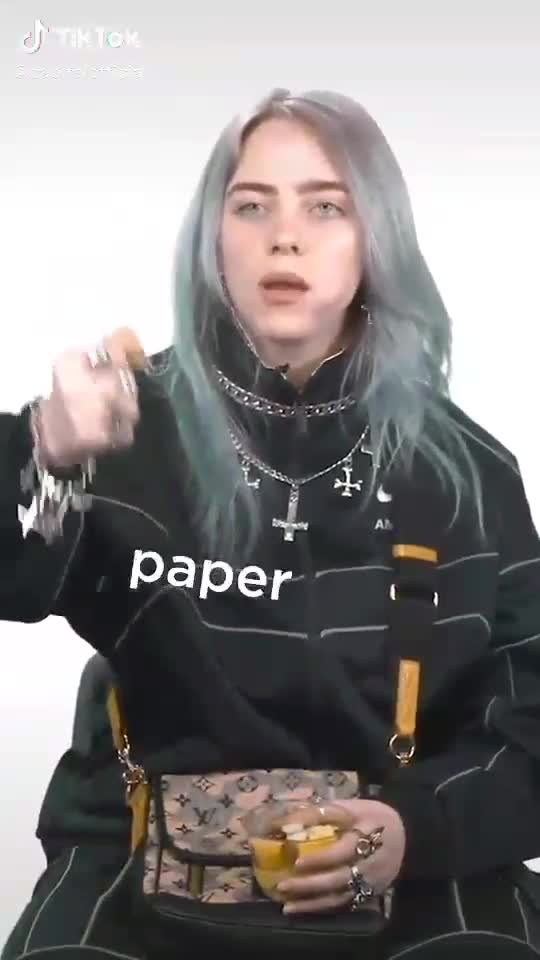 بیلی ایلیش در حال انجام بازی سنگ،کاغذ،قیچی