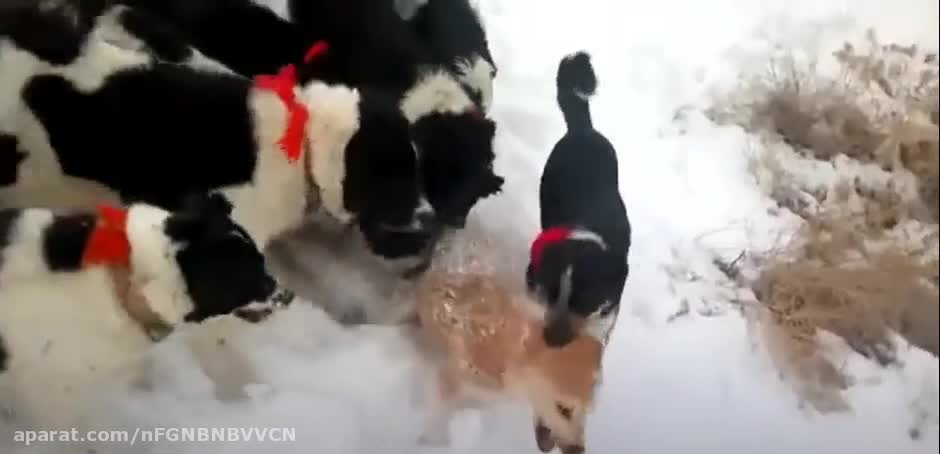 حمله ی سگ های قدرجونی به گرگ