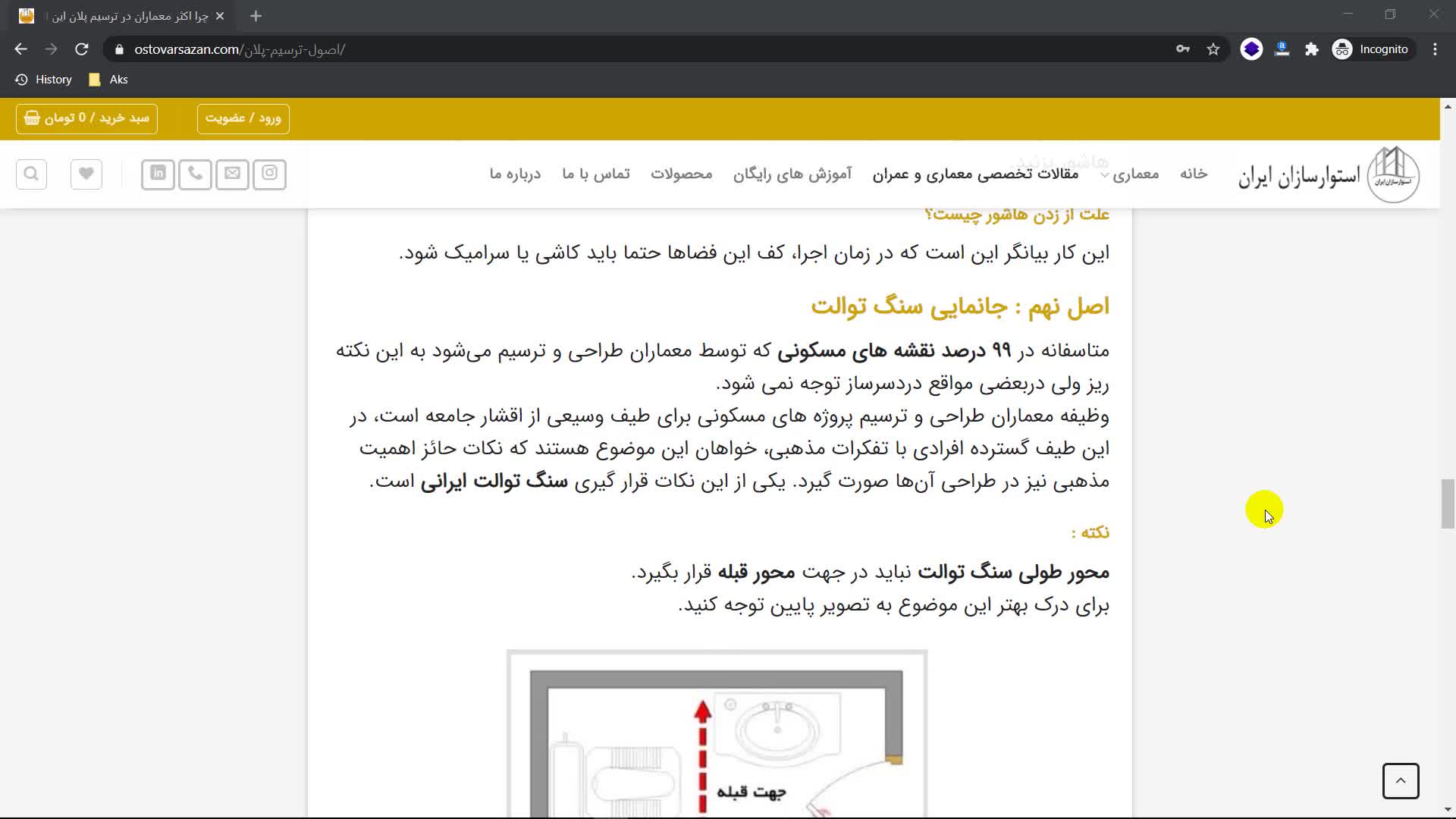 نمایش صحیح سنگ توالت ایرانی در پلان معماری