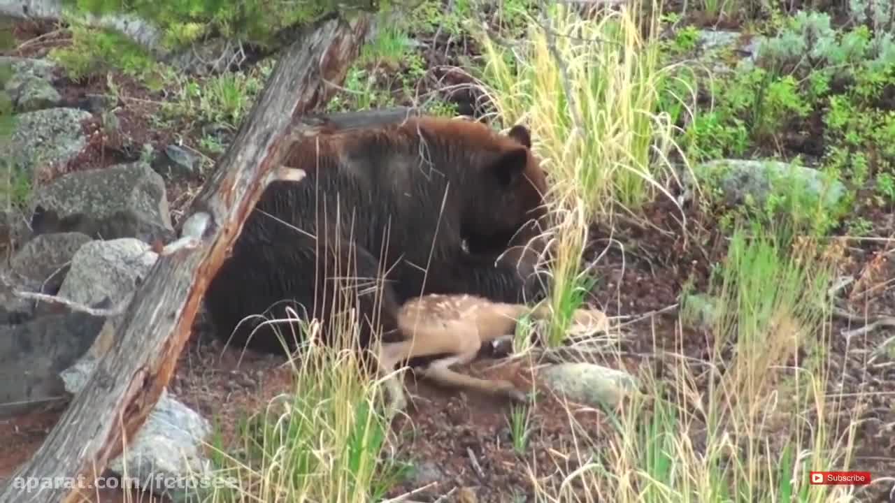 خرس بچه گوزن را زنده می خورد : حیات وحش