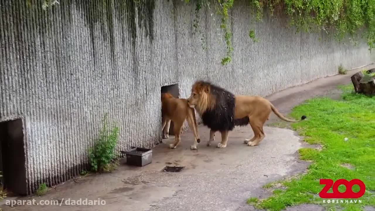 اولین ملاقات شیر نر با توله هایش در باغ وحش