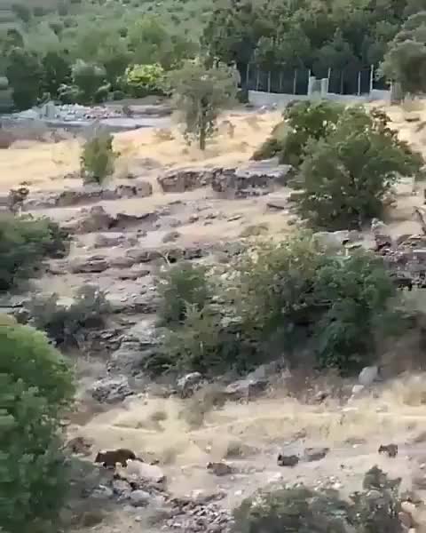 دویدن یک خرس با توله های خود در اطراف چشمه میشی