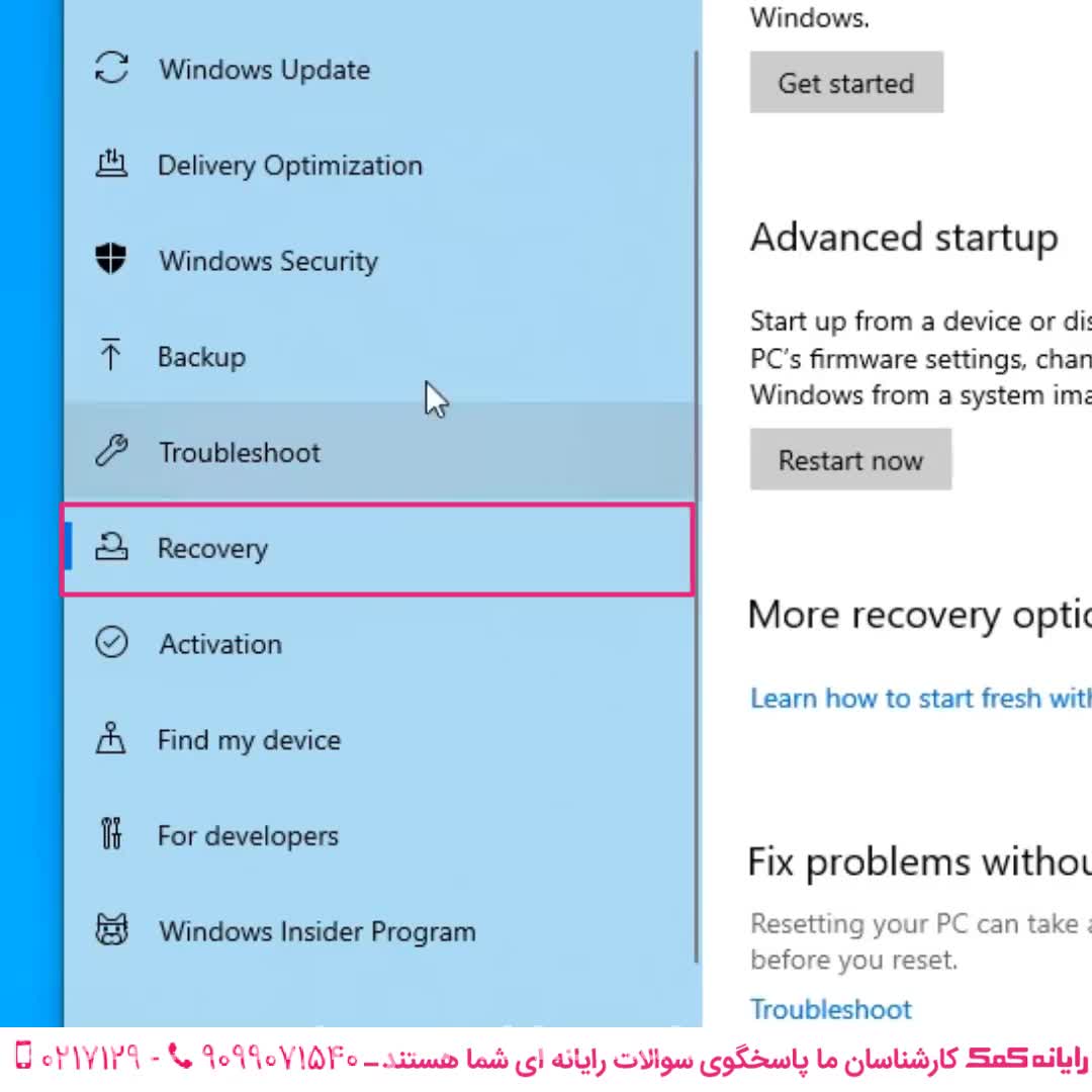 بازگردانی ویندوز 10 به تنظیمات کارخانه
