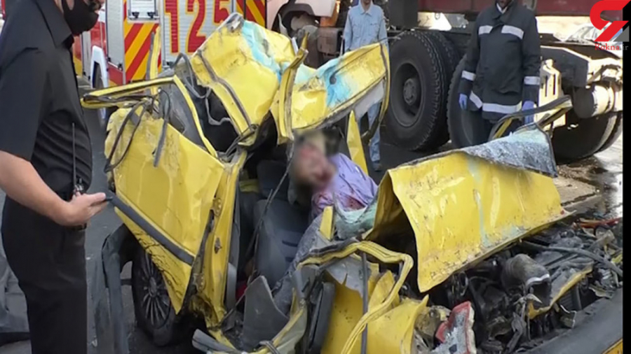 له شدن زن و مرد اصفهانی در تاکسی : پراید زیر تریلی مچاله شد