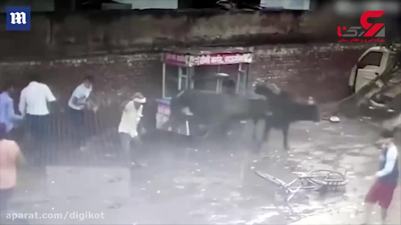 لحظه وحشتناک حمله گاو به کودک خردسال