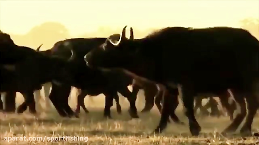 گله بزرگ فیلها هنگام خوردن اب در حیات وحش افریقا