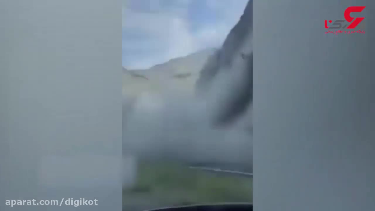 ریزش سنگ کوه در مقابل چشمان راننده زن