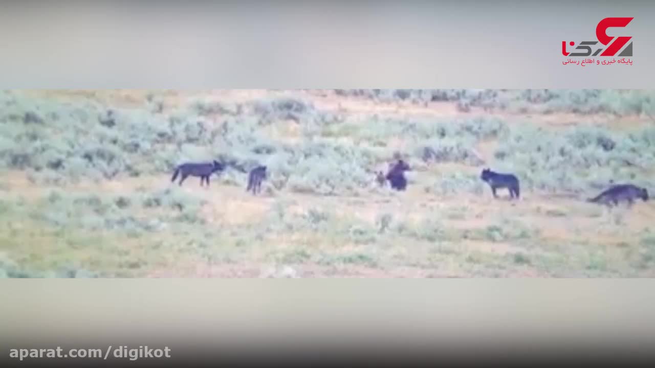 لحظه رویارویی خرس مادر با گله گرگ ها