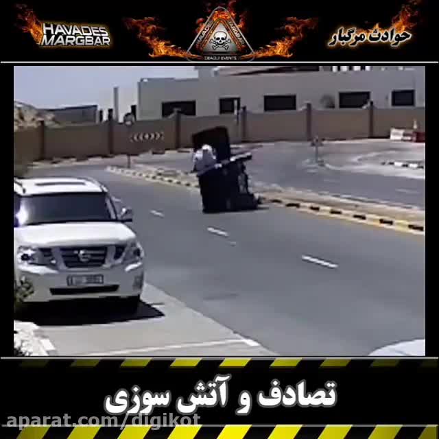 تصادف و آتش سوزی وحشتناک خودروی مردان عرب