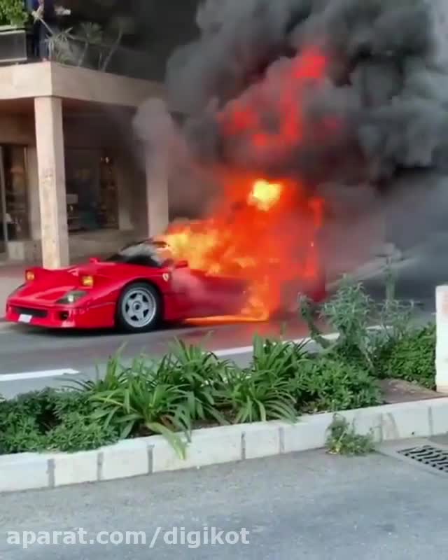 ذوب شدن ماشین لاکچری بر اثر آتش سوزی