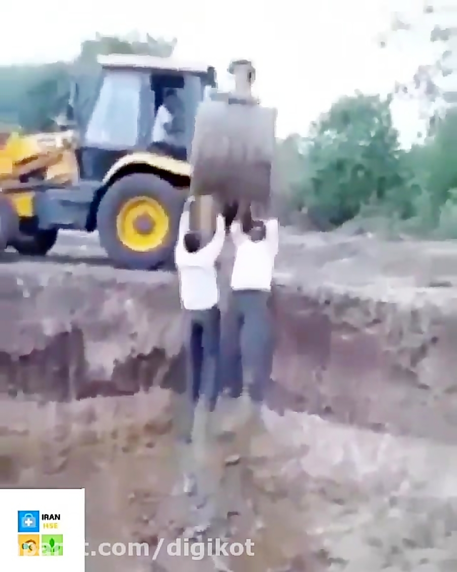 عاقبت تلخ بالا کشیدن کارگرها از گودال محل کار با بیل مکانیکی