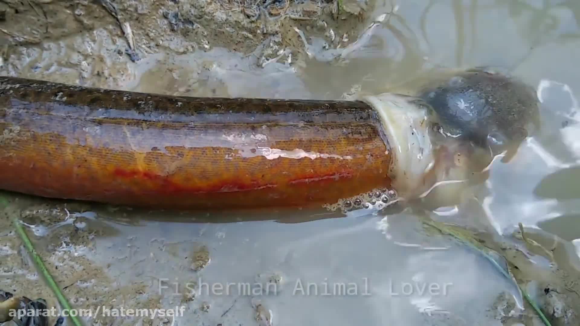 وقتی یه ماهی بزرگ یه مارماهی رو شکار میکنه و اونو میبلعه