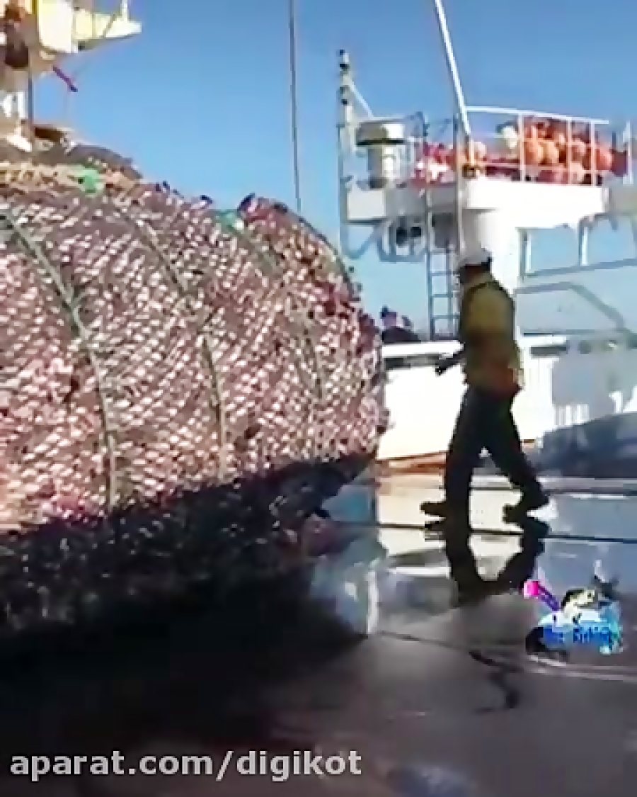 صحنه ای از حجم ماهی شکار شده توسط یک کشتی فقط در یکبار صید