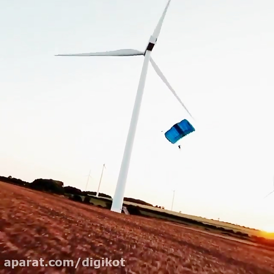 پرش خطرناک با چتر نجات از بالای توربین بادی