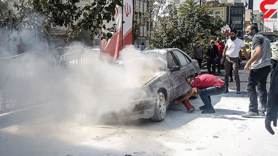آتش سوزی یک دستگاه پژو 405 در خیابان پیروزی