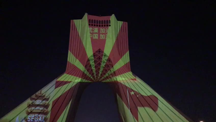 همدردی ایران با ملت چین در مبارزه با کرونا روی برج آزادی نقش بست