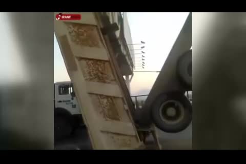 تصادف عجیب کامیون با پل عابر پیاده در اصفهان
