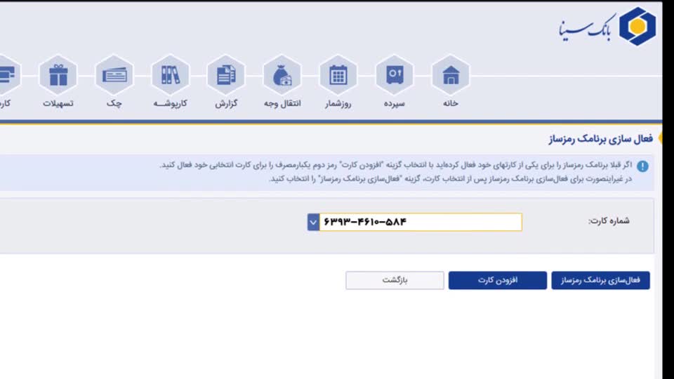 راهنمای فعال سازی رمز پویا (یکبار مصرف) بانک سینا