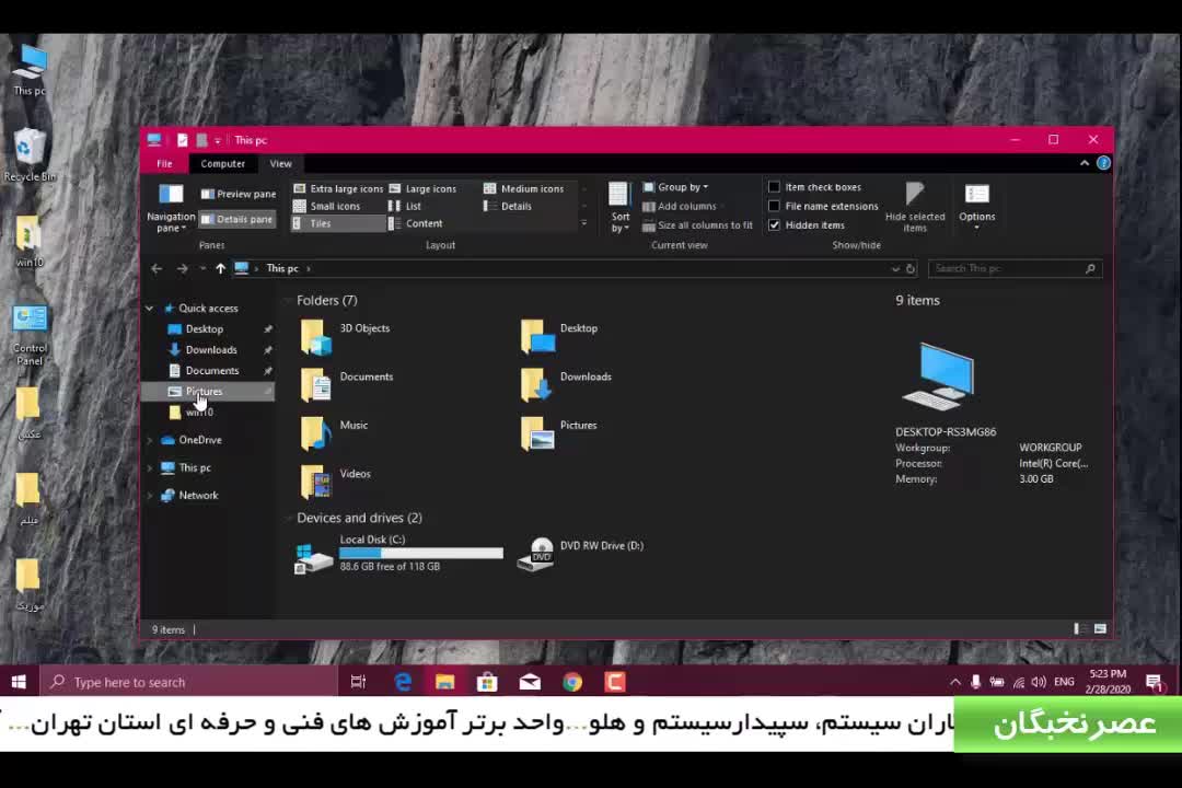 آموزش رایگان کامپیوتر در آموزشگاه عصرنخبگان - بررسی فایل اکسپلورر