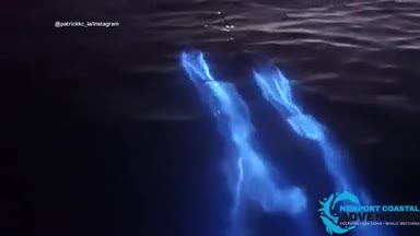 شنای نورانی دلفینها در یکی از سواحل کالیفرنیا