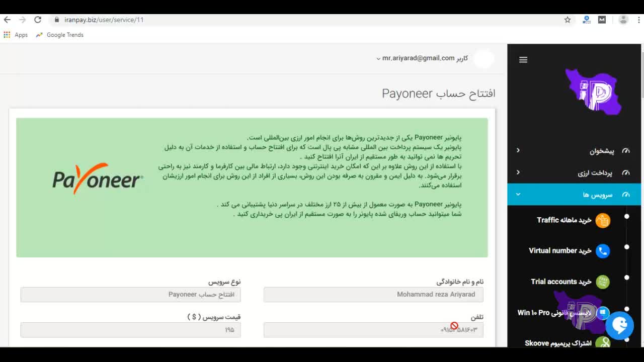 افتتاح حساب Payoneer