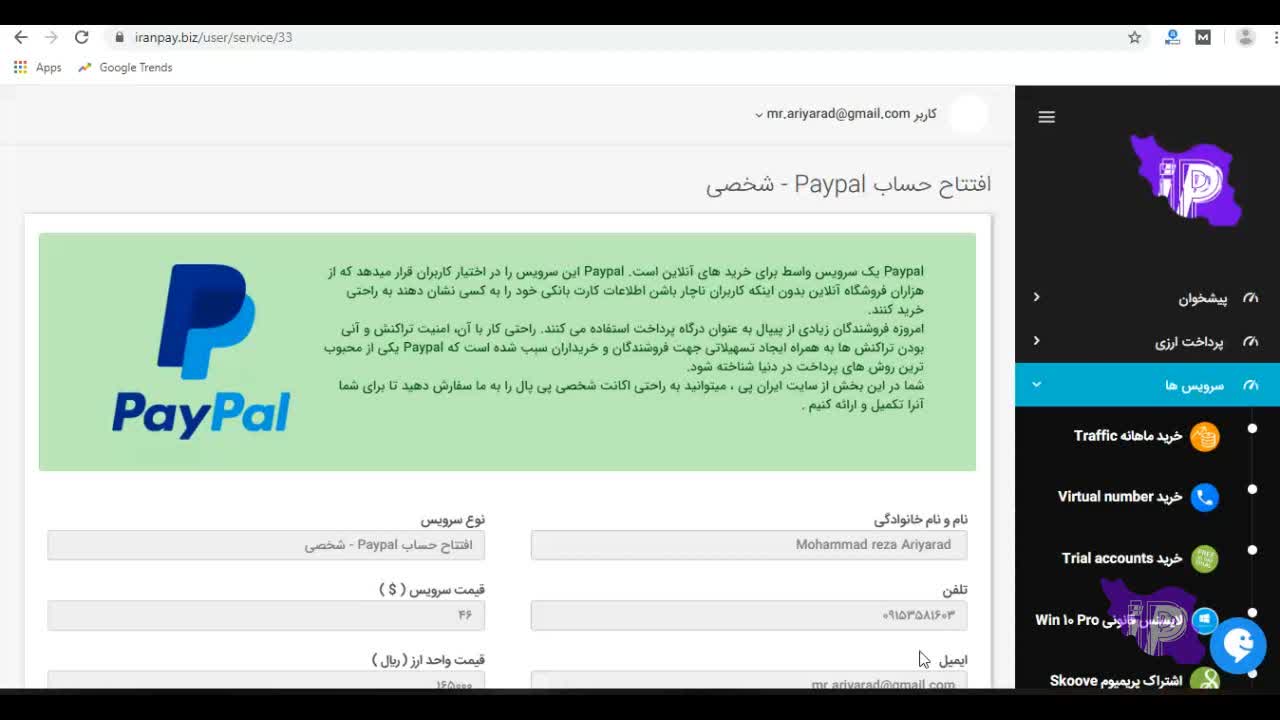 افتتاح حساب Paypal - شخصی