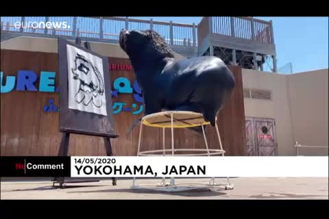 شیر دریایی نقاش در آکواریوم یوکوهاما !
