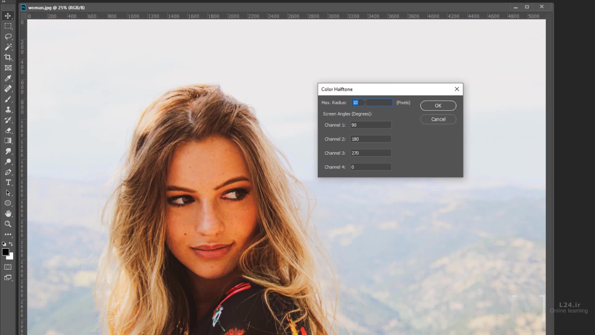 آموزش رایگان فتوشاپ : افکت ترام رنگی پوستر لرنینگ24 - l24.ir